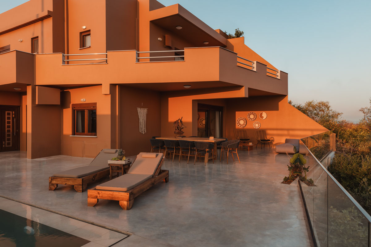 Nestled in Koutsounari, Ierapetra, Crete, this exquisite two-level villa offers an ideal retreat for larger groups. Boasting an impressive 250 sq. meters of interior space, it comfortably accommodates up to 10 guests.