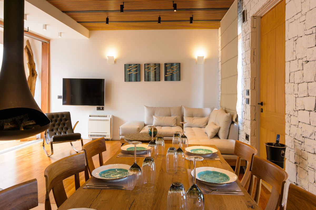 Casa di Plaka is a brand new luxury villa with, located next to the sea at the village of Plaka. It consists of two bedrooms, a living room with a fireplace, a fully equipped kitchen and a dining room.