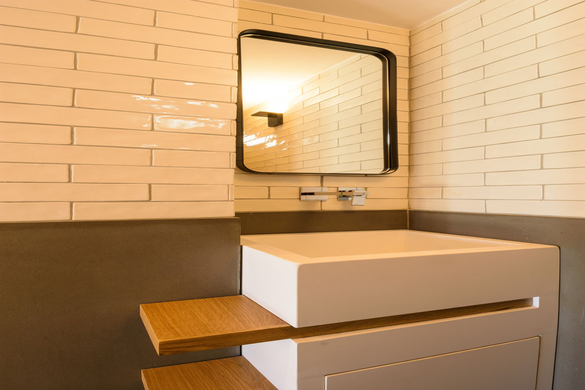 The two bedrooms are located on the first floor.The first has a double bed and en-suite bathroom with a shower. The second has two single beds and also en-suite bathroom with a shower. Both of the rooms have sea views. One extra person can sleep on the ground floor at a sofa bed.
