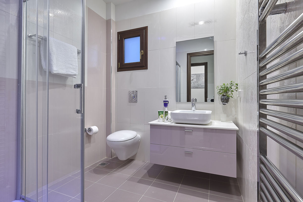 Two bedrooms are also located on this level, the first with a double bed with access to the outside area and a second one with a double bed. Both of the bedrooms are an-suite with showers.