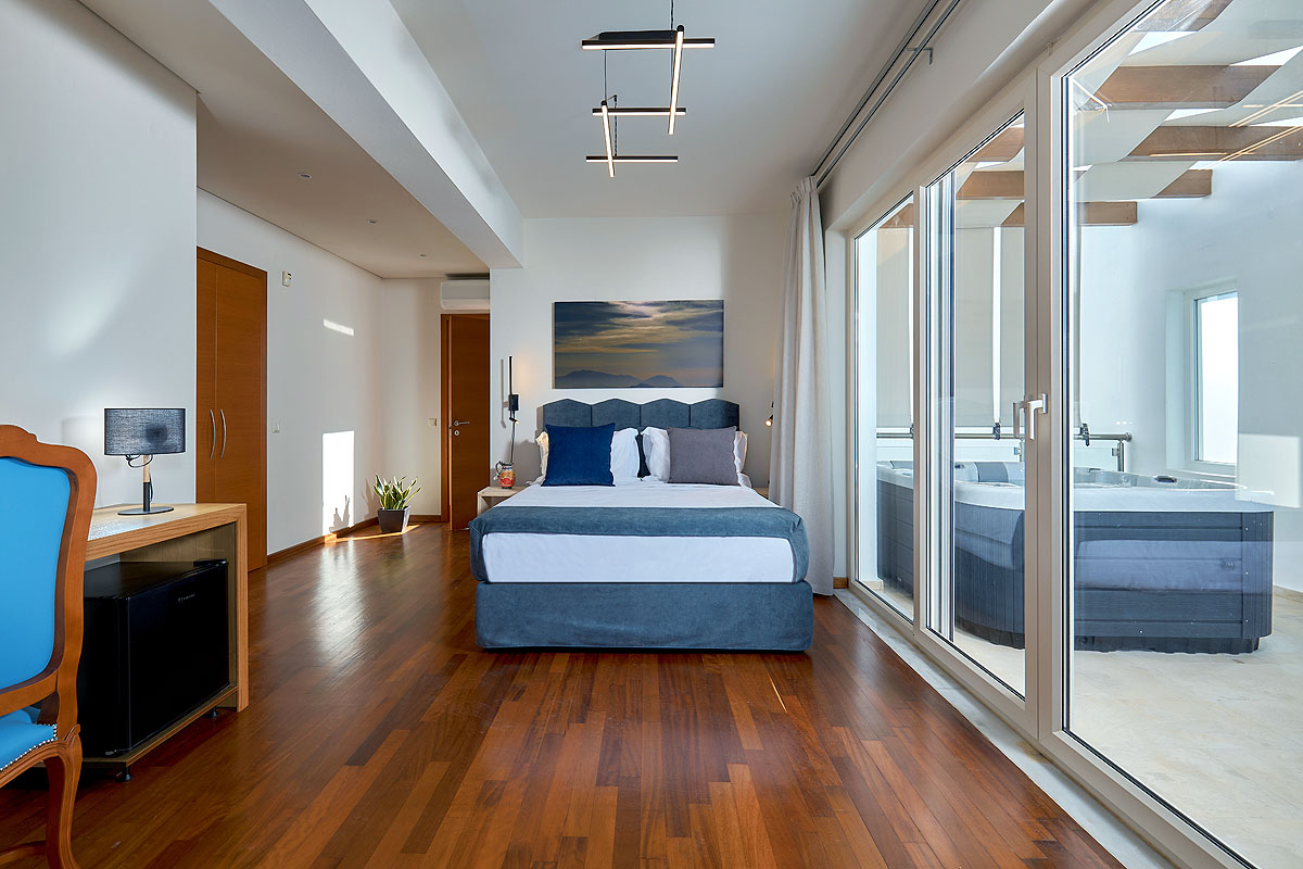 room, and an outdoor Jacuzzi with view of the ocean. A King Size bed
