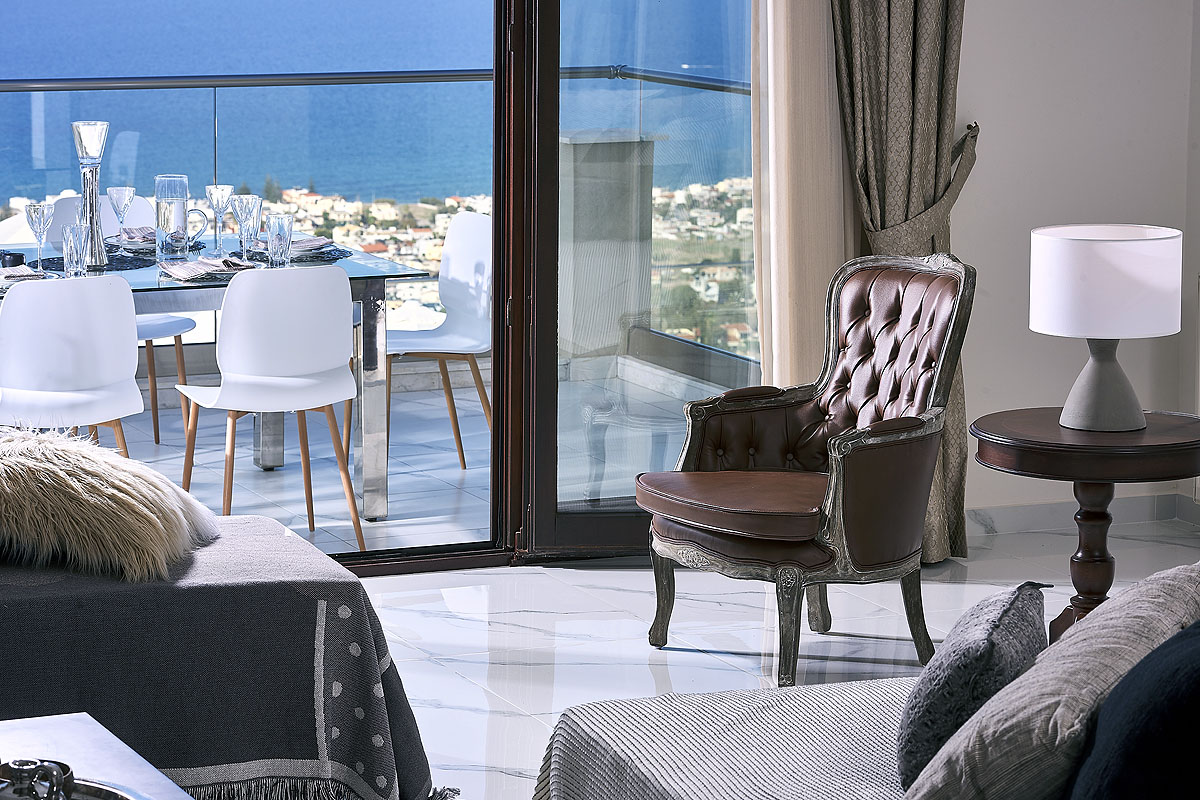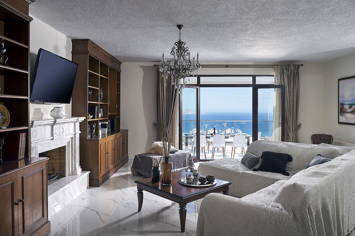 The sea view is unique and breathtaking. It can only be compared to the famous view of Caldera in Santorini. It provides picturesque views of the island of Dia opposite, inhabited by wild Cretan goats known locally as Kri-Kri, that are found only on this island and in Samaria Gorge. The villa is located just 2.5 km from the golden, sandy beaches of Kokkini Hani and Gournes. On these relaxing beaches, you can enjoy your coffee or a drink in one of the many cafe bars , as well as taking part in the exciting water sports available.