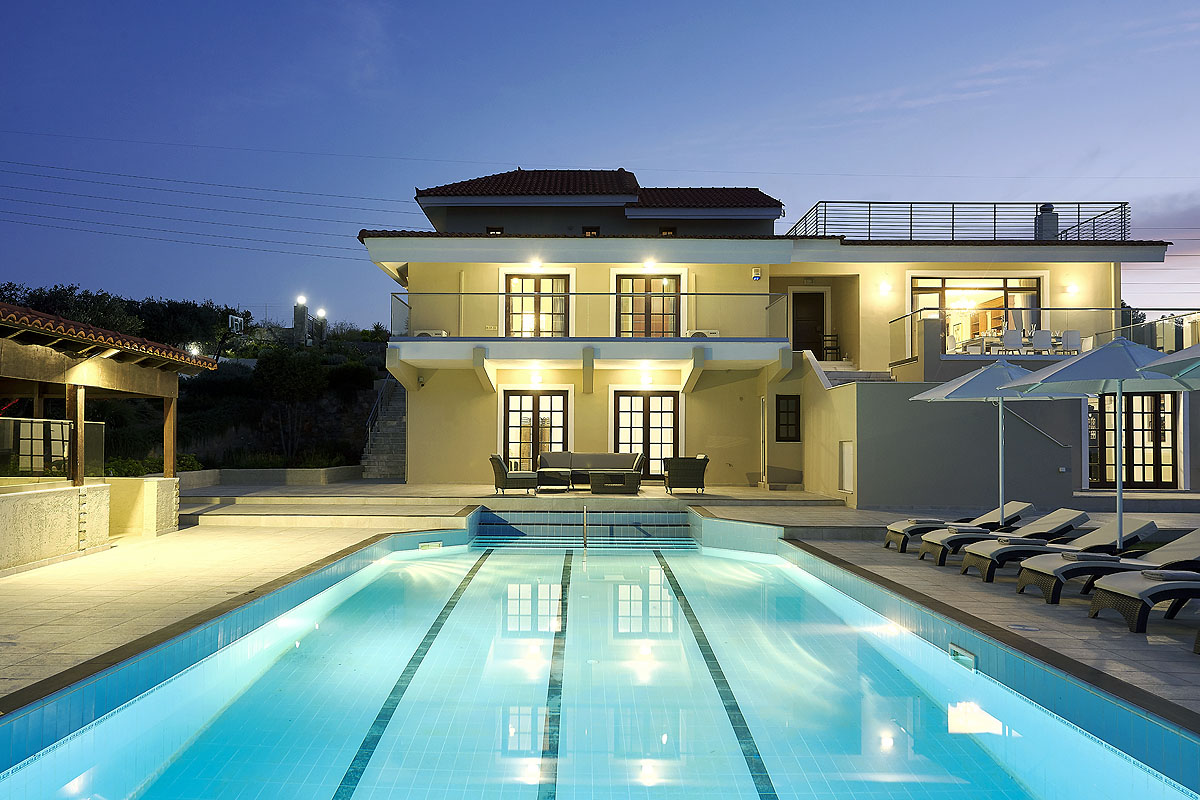 Villa Ada is a 450 sqm, built on a 4500 sqm plot with beautiful, well-kept gardens with an abundance of flowers and trees, where you can either relax in a shady spot to read or you can play basketball in the outdoor court. Six bikes are also available for amazing bike rides in the beautiful Cretan hills. The villa provides all the comforts needed for relaxation and rejuvenation: a large 70 sqm outdoor heated pool, a 5-seater outdoor heated Jacuzzi, sun loungers, umbrellas, a 90 sqm. lawn, an outdoor lounge area, a BBQ with a wood-fire oven and a dining table.