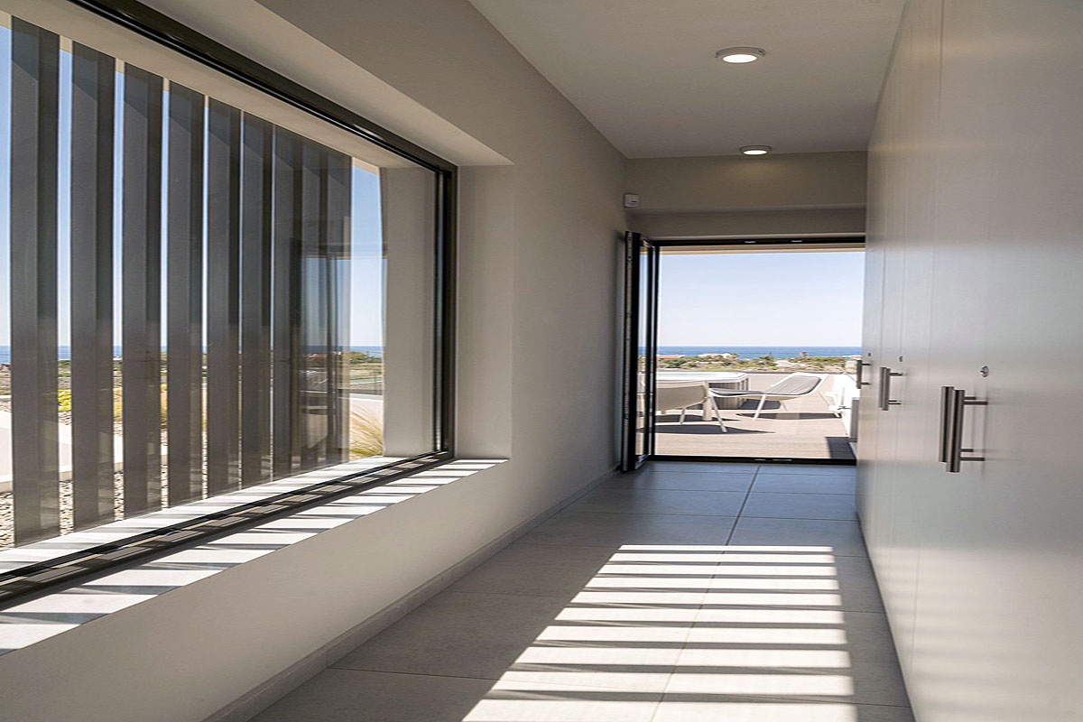 The windows have been treated with a sun-reflecting material to further reduce the summer temperatures inside the villa.
