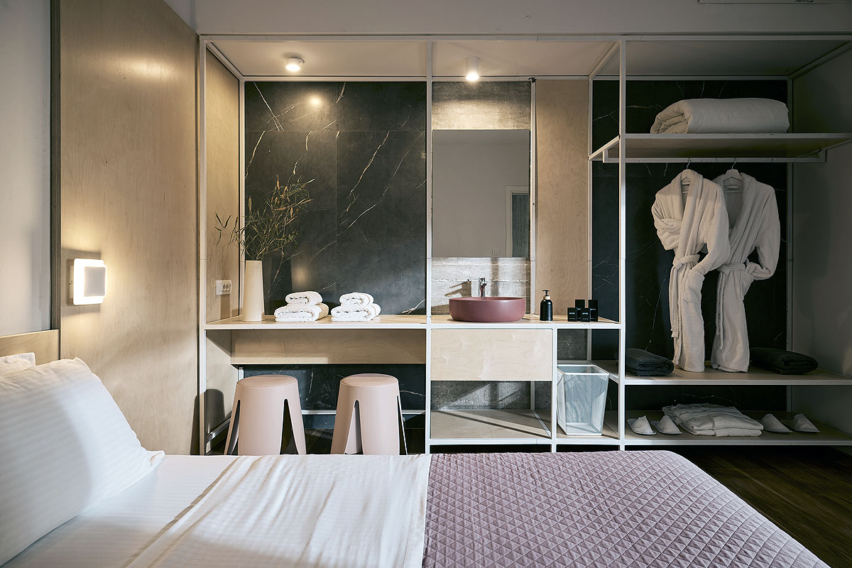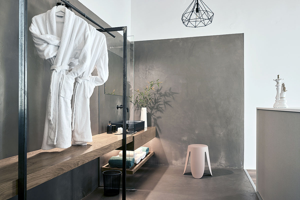 On the ground, there are two double bedrooms. All of them share one large bathroom with bathtub. On the first floor, there is a living room with stunning sea views, a fully equipped kitchen, a dining area and one more WC. On the lower floor of each villa, there is a large room with two double beds and one master bathroom shower. This room can accommodate up to four persons and it is ideal for a family with children.