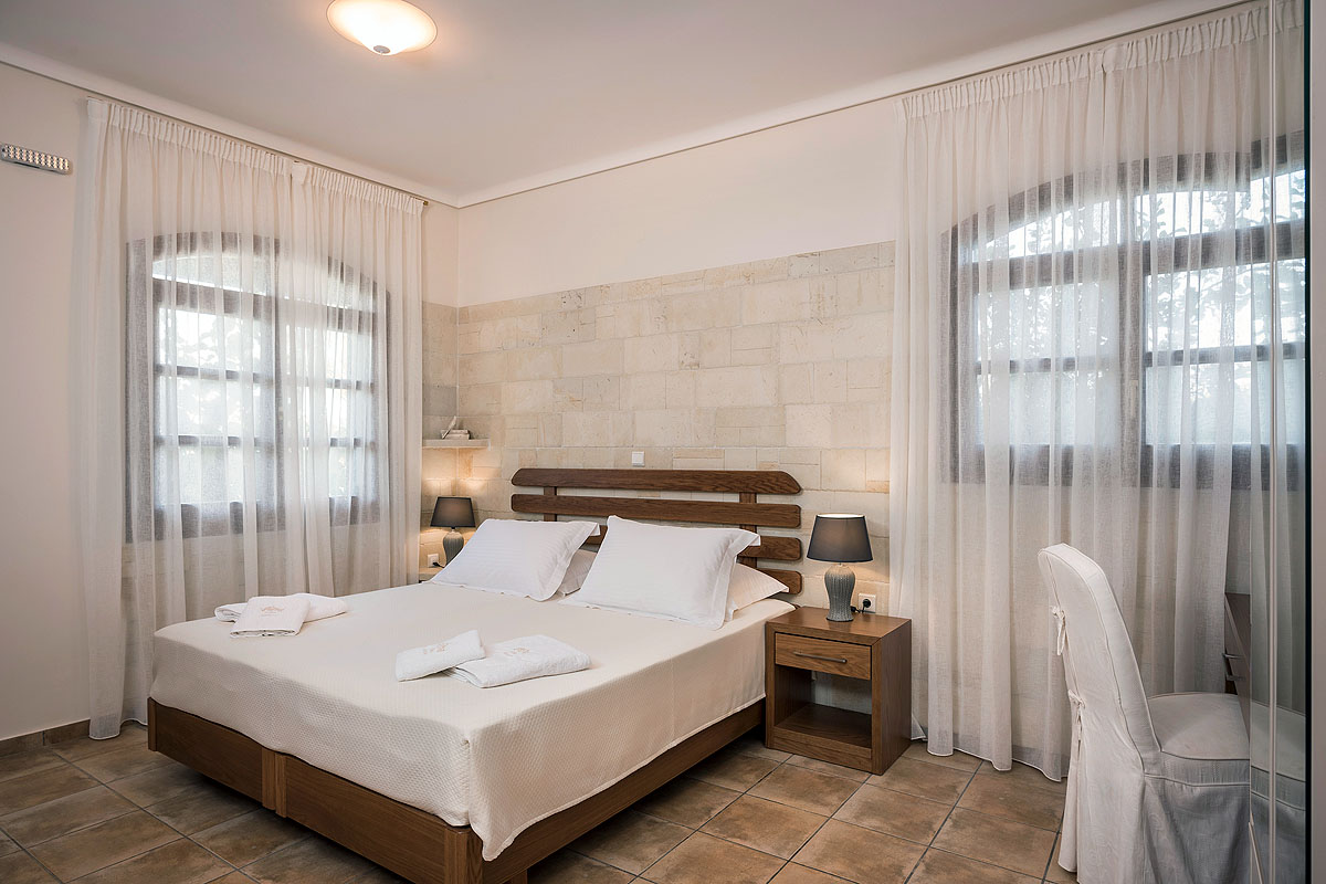 The villa offers a 4.000sqm outdoor area with a lawn garden with tall palm trees. It features a huge (180sqm) private swimming pool with a children’s area, sun loungers and umbrellas. There is also BBQ area with a grill and traditional wood oven, a dining table for 12 people and a sitting area ideal for dinners with your loved ones.