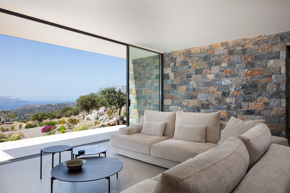 Additionally, the first floor offers a double terrace with lounge seats to enjoy the sunset over the magnificent white mountains and a private sunbathing terrace with breathtaking views of Souda Bay and the Aegean Sea.