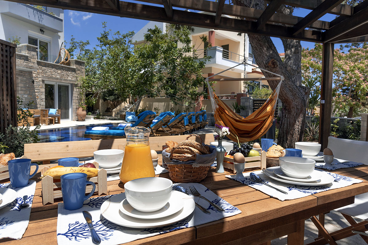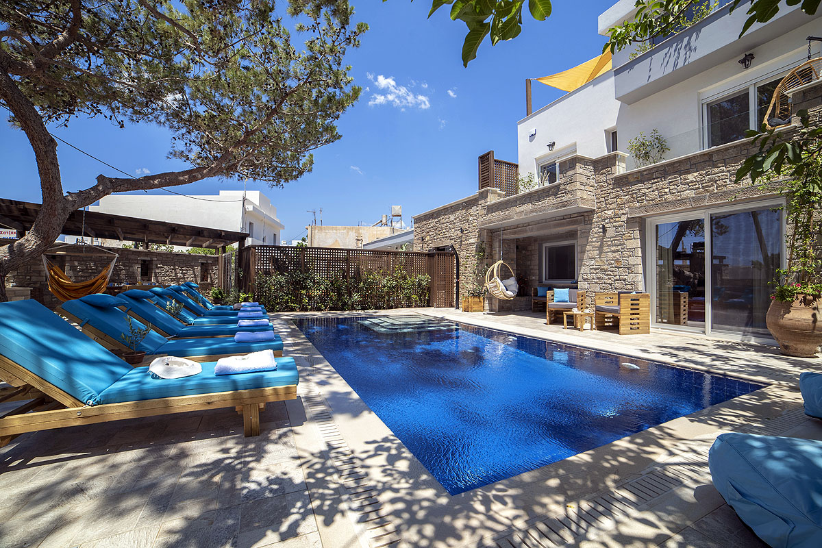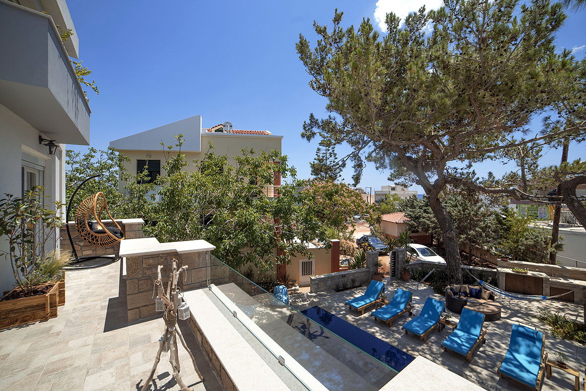 Villa Pefka is a beautiful mezonette (3 floors) inspired by wilderness in colors of red, orange and blues. Located in a fenced, wooded, secluded lot, with mature tall pecan and pine trees, private infinity pool and barbecue. It has 3 private bedrooms with en-suite bathrooms, as well as a loft bedroom with en-suite WC.
