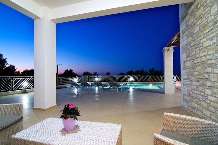 The villa has a private pool, large terraces and verandas all with amazing views of the surrounding area. It is designed to accommodate eight guests in four en suite bedrooms and is decorated in a way that combines traditional and modern elements.