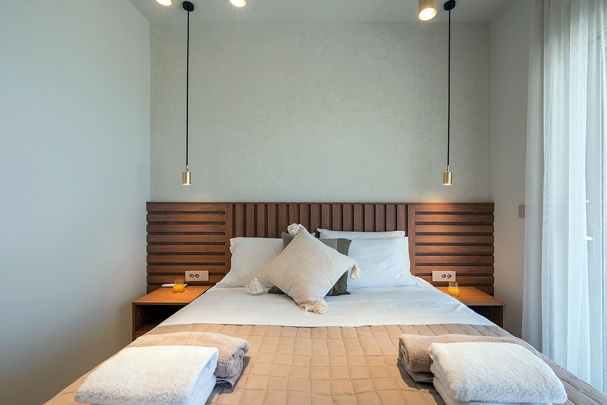 Each of the five bedrooms features a large opening with an excellent view and a private bathroom for ultimate comfort and privacy. In two of the bedrooms, there is the possibility of adjusting two single beds, making it ideal for families with children.