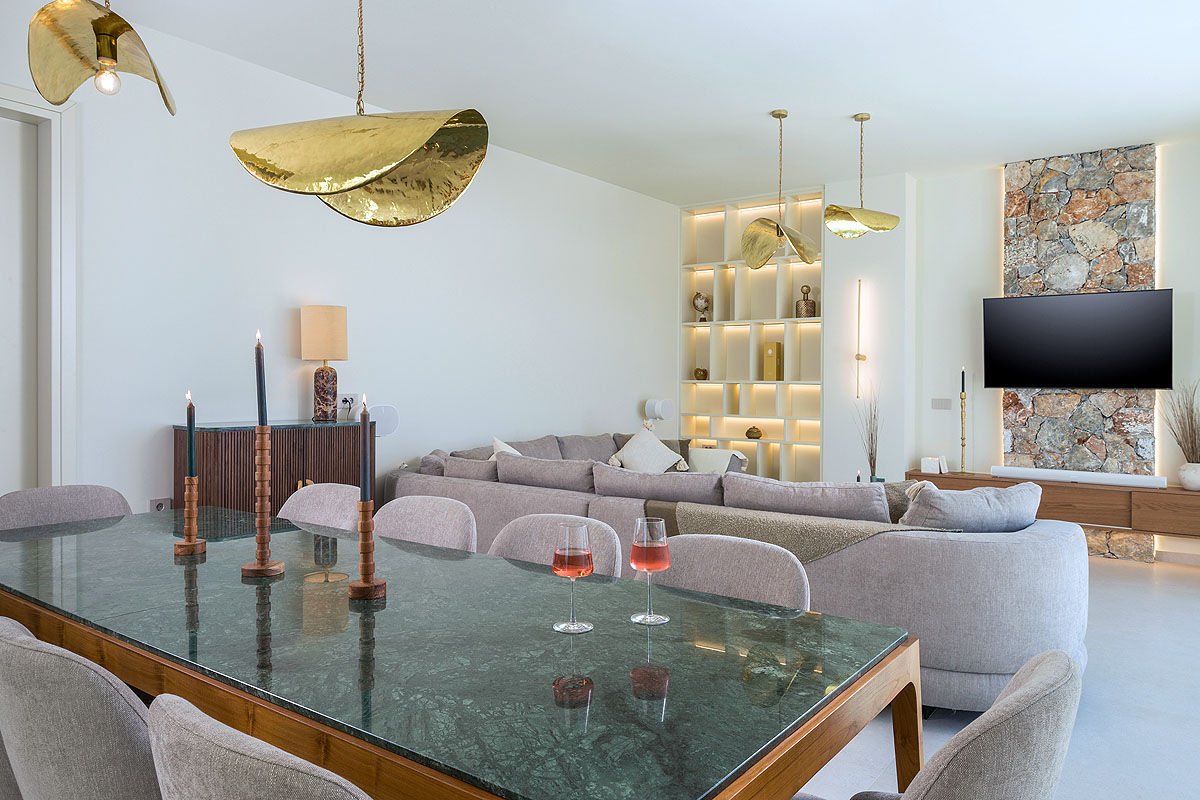 As soon as you enter the villa, you’ll be struck by the spectacular sea views visible from every room. The villa’s over 2,000 sq.m. of beautifully landscaped exterior spaces provide the perfect setting for relaxing and soaking up the sun.