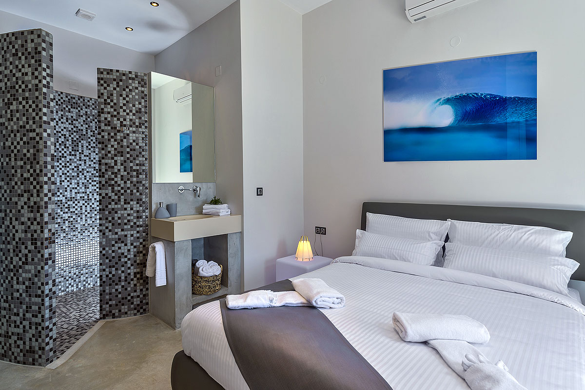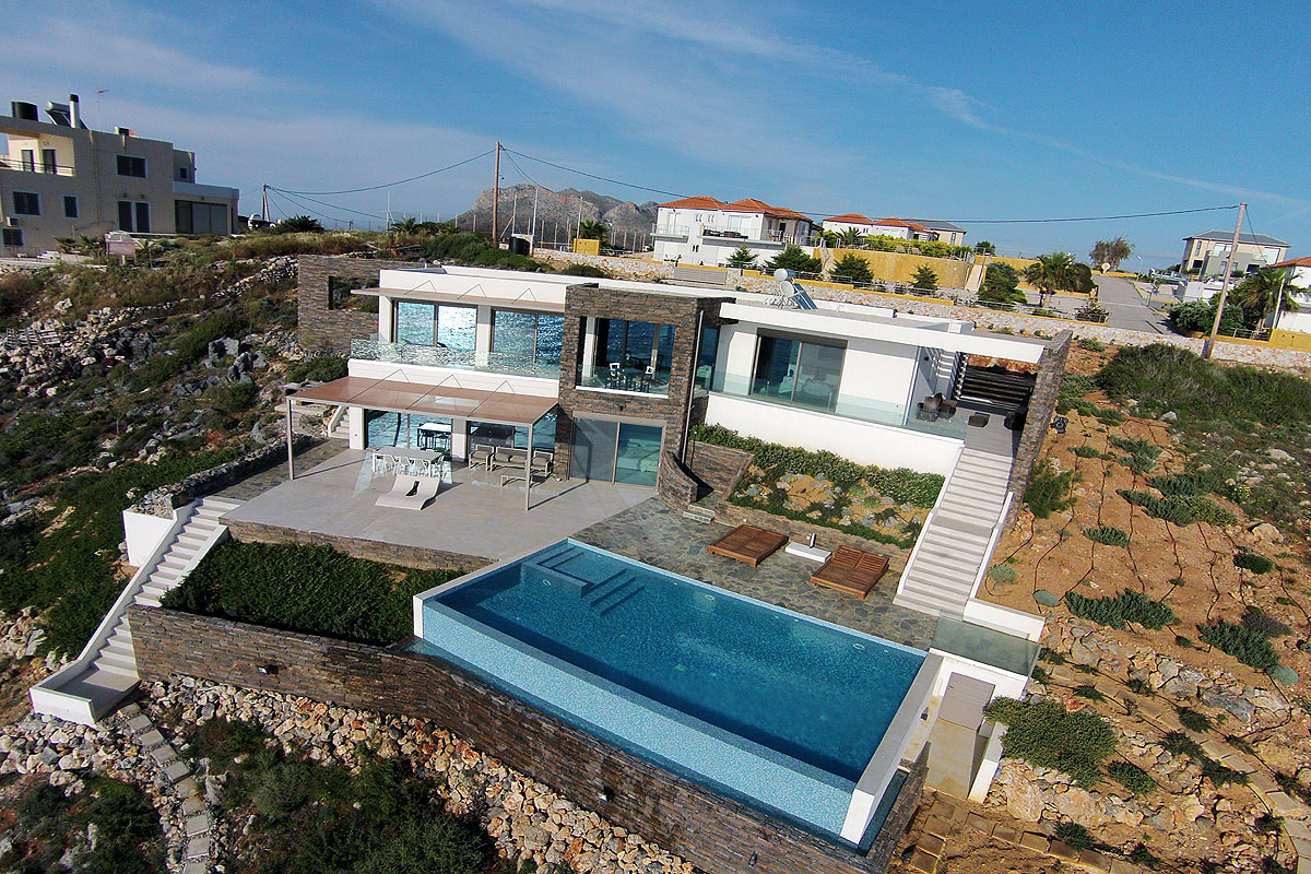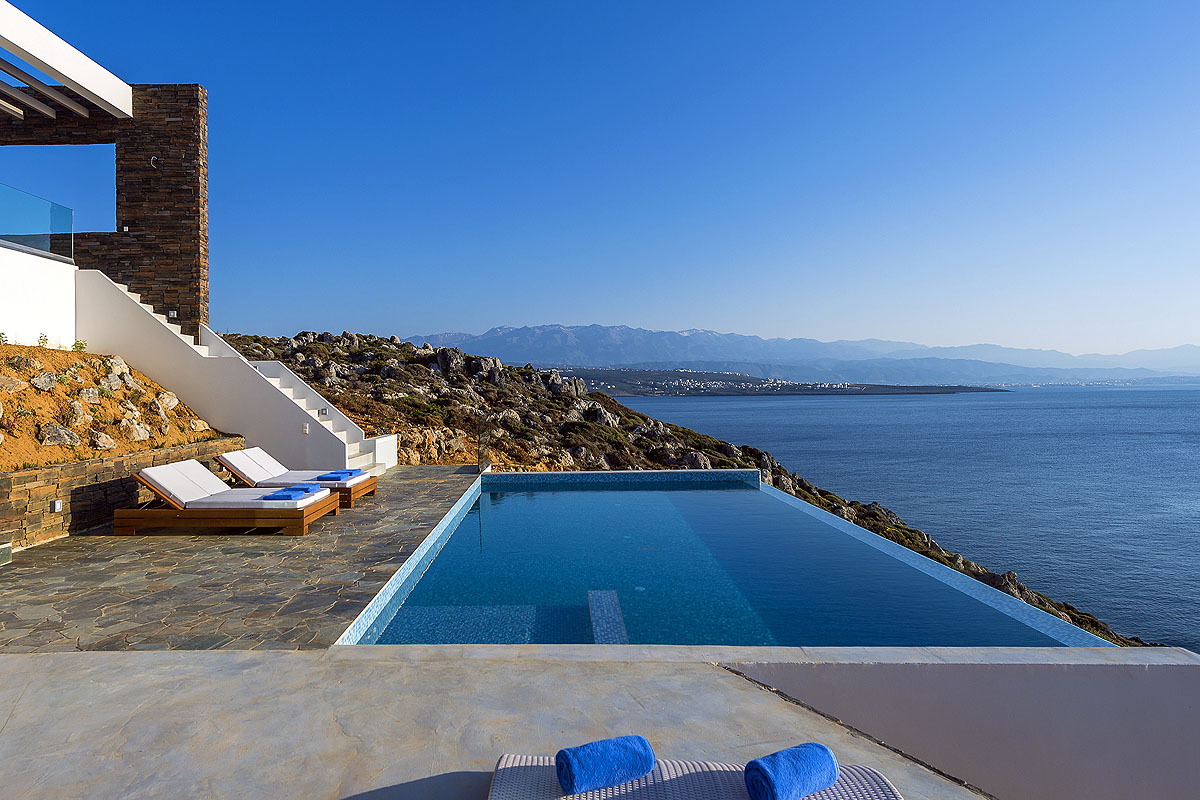 VIP Villa is a 5 star modern villa overlooking the bay of Akrotiri near the picturesque town of Chania. Designed by a sea lover, 4 of the 5 master bedrooms and both living rooms offer breathtaking and panoramic views over the turquoise bay.