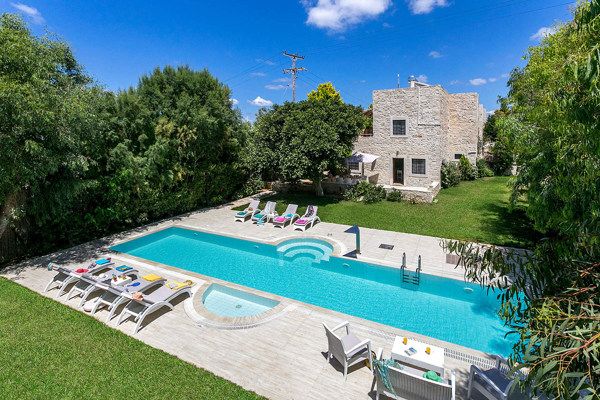 Villa Vitzentzos belongs in a complex of four independent villas located in the area of Kato Gouves, on the north coast of Crete. The villa combines the characteristics of the traditional Cretan architecture with those of modern design which creates a marvelous and luxurious holiday home.